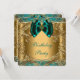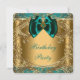 Beautiful gold swirls jade and gold birthday party invitation template. This elegant teal blue jade and gold birthday party invitation is easily customised for your event by simply adding your event details, font style, font size & colour, and wording. Please note - all of the stickers, cards and invitation designs you will find on Zazzle are printed graphics with no actual jewels, bows, raised, embossed, or added parts or pieces.