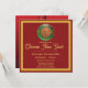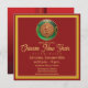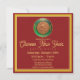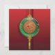 Elegant Chinese New Year of the Dragon design with a jade ornament hanging with a gold dragon on a red background.