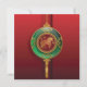 Elegant Chinese New Year of the Horse design with a jade ornament hanging with a gold horse on a red background.