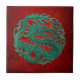 Jade Dragon Carving On A Red Background Tile