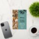 Photo wedding invitation in muted jade green and rose gold personalised with three photos. Informal rose gold foil wedding invitation in white and green with three photos on the left hand side.