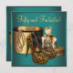 Elegant jade and gold high heel shoe birthday party invitation template. This beautiful teal blue and gold 50th birthday party invitation is easily customised for your event by simply choosing the "Customise it!" button to begin adding your event details, font style, font size & colour, and wording. Please note - all of the stickers, cards and invitation designs you will find on Zazzle are printed graphics with no actual jewels, bows, raised, embossed, or added parts or pieces.