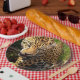 Set of eight 9” paper plates with an image of a handsome adolescent jaguar. The jaguar is a near threatened species and its numbers are declining. See matching flask, shot glass and coasters. See the entire Safari Plate collection in the FOOD/BEV | Dishes section.