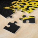 8” x 10” jigsaw puzzle with a contemporary image of a handsome jaguar on black.