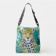 Jaguar Leopard Big Cat Teal Colours Crossbody Bag