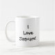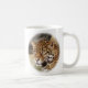 Original close up photo of a jaguar's face. One side of the mug features the jaguar photo while the other side has the text "I love jaguars". Text is customisable and can be changed or removed.