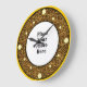 Jaguar round photo frame behind the hour marks, Place your photo here custom wall clock, your photo will appear behind the round photo frame for a truly professional look - light gold dots for hour marks - 12,3,6 and 9 being larger dots, in a diamond shaped pattern looks great on round or square clocks