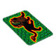 Colourful art and pattern design with a red gold and green outlined black dredlock Rasta lion