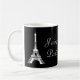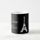 A cute mug featuring a picture of the Eiffel Tower in white with the words "J'aime Paris" on both sides. The background is black but you can customise it to any colour you wish.