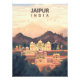 Step into the regal charm of Jaipur, India’s Pink City, with this stunning retro travel poster. Showcasing majestic Rajasthani architecture set against the dramatic backdrop of the Aravalli Hills, this artwork evokes the elegance and history of India’s royal heritage.