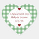 A sweet and spicy design for wedding favour jalepeno jelly jars, this heart shaped sticker label features a background in a timeless gingham pattern of pepper green with a white oval and hot red font. There are two red hearts and the names of the bride and groom with the wedding date and a romantic saying. All text fields are templates to make it easy for you to customise #weddingfavor #jellyjar #stickerlabel #spicy #jalepeno