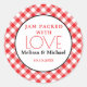 Jam packed with love wedding favour seals with a classic red and white gingham print for jam jelly favours.