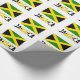 The Jamaican Flag is black, gold, and green. The gold is a saltire that goes from the centre to each corner. The black is on the left and right, filling in the outside of the saltire. The green does the same as the black, but on the top and bottom of the flag. This design features the word JAMAICA below the flag in the same design. Share your heritage with this wrapping paper.
