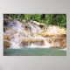 Dunn's River Falls is a famous waterfall near Ocho Rios, Jamaica. It is one of the very few travertine waterfalls in the world that empties directly into the sea. Described as a living and growing phenomenon, it continuously regenerates itself from deposits of travertine rock, the result of precipitation of calcium carbonate from the river, as it flows over the falls. The small dome-shaped cataracts are usually associated with thermal spring activity found in limestone caves. This, combined with its location near to the sea, gives Dunn's River the distinction of being the only one of its kind in the Caribbean, if not the world.