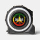 Jamaica tape measure with a Jamaican Rasta colour peace sign symbol and black customisable text "one love". Green, red, and gold colour scheme. Great for loves of island / Caribbean culture.