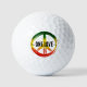 Jamaica golf balls with a Jamaican Rasta colour peace sign symbol and black customisable text "one love". Green, red, and gold colour scheme. Great for loves of island / Caribbean culture.