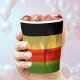 Jamaican Rasta colours red, green, yellow gold and black paper cup with beach and palm tree background. Great for a Jamaica vacation or lovers of island / Caribbean culture.