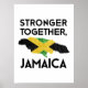 The design concept for "Stronger Together, Jamaica" centers on themes of resilience, unity, and positive social impact during challenging times. The visual idea generally features bold, uplifting typography paired with symbols of Jamaican identity—such as the national colors, map outlines inspired by tropical nature and community spirit.