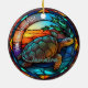 Cute faux stained glass tropical sea turtle scene, personalizable trip souvenir. Great for Christmas and family vacation keepsake, or honeymoon keepsake.