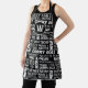 Black and white Caribbean themed typographic kitchen apron patterned with the names of traditional Jamaican dishes. There's a monogram area on the front for you to add your own initial