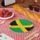 The flag of Jamaica in the Pan-African colours of yellow, black, and green. Green for the land, black for the strength of the people, and yellow for the sun.