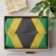 This design features the national flag of Jamaica, which is an island country in the Caribbean Sea. It is the third-largest island of the Greater Antilles and the Caribbean (after Cuba and Hispaniola). The country has a global influence that belies its small size: for example, it was the birthplace of the Rastafari religion, reggae music (and associated genres such as dub, ska and dancehall) and it is internationally prominent in sports, most notably cricket, sprinting and athletics. The capital city of Jamaica is Kingston. Other major cities and towns in Jamaica include Portmore, Spanish Town, Montego Bay, May Pen, Mandeville, Old Harbor, Savanna-la-Mar, Ocho Rios and Linstead.