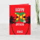 Happy 70th birthday greeting card with a Jamaican flag number 70 and palm trees. Customise the text on the front and inside, to add your own names and messages