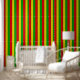Red, yellow and green rasta flag coloured vertical striped peel and stick wallpaper