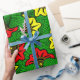 Present your tropical Jamaican wedding gifts in this vibrant biloba flower patterned gift wrap, in bold red, gold amd green rasta colours