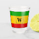 Rasta flag rum shot glass, with a monogram square on the front for you to add your own initial
