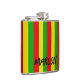 Jamaican rasta flag coloured red, yellow and green striped hip flask. The text across the bottom is customisable so you can add your own name or message