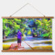 Our Wood-Topped Wall Tapestry features vivid colours, crisp lines, and a rustic open wooden frame.