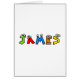 Funny cartoon typeface with cartoon eyes spelling out the boys name JAMES. Find more names in this series. Easily customise and choose your own background colour. Image available on various gifts and products.