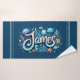 Luxurious bath towel with James' name surrounded by adorable sea life including jellyfish, starfish, and seahorses. Transform bath time into an oceanic adventure. Super soft and highly absorbent.