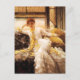 James Tissot Seaside postcard. Oil painting on canvas from 1878. French artist James Tissot devoted most of his career to painting everyday Victorian themes. Seaside depicts a pretty young woman with red hair wearing a white Victorian seaside dress with flowing yellow ribbons. The girl lounges on a couch indoors but the beach and sea can be seen through the window behind. The woman leans with her head on her hand and stares coolly off into the distance. A great gift for fans of Tissot, Victorian art, and vintage fashion.