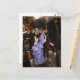 James Tissot The Bridesmaid postcard. Oil painting on canvas from 1883-85. French artist James Tissot lived most of his career in England painting charming scenes of everyday life. The Bridesmaid depicts a pretty young woman in a lavender Victorian dress climbing into a horse drawn carriage on her friend’s wedding day. The carriage door is held open by a young man in a tuxedo wearing a top hat and holding a black umbrella. Passersby watch the scene as they walk down the busy London street. The young woman’s elegant purple bridesmaid dress cleverly draws the viewer’s attention to the centre of the painting. A beautiful gift for fans of Tissot, Victorian art, Victorian London, and vintage wedding paintings.