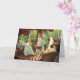 James Tissot Victorian Tea Party greeting card. Oil painting on canvas from 1878. French artist James Tissot’s Victorian Tea party (In The Conservatory) feautures a group of Victorian aristocrats taking tea in a conservatory greenhouse. One woman lounges in a chair in a red and pink dress, while two sisters sip from teacups wearing matching light blue Victorian dresses with blue ribbons and bustles. A young man sits nearby as a couple in the background chats. Palm tree can be seen through the conservatory glass. A beautiful gift for fans of James Tissot, Victorian England, vintage tea parties, and Victorian fashion.
