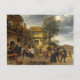 This Baroque genre masterpiece titled, Peasants before an Inn is made by the famous painter, Jan Steen using oil on canvas in 1653. he painted historical, mythological and religious scenes, portraits, still lifes and natural scenes. His portraits of children are famous. He is also well known for his mastery of light and attention to detail, most notably in persian rugs and other textiles.