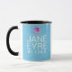 Jane Eyre quote by Charlotte Bronte with pink watercolor rose and white text on blue background: