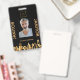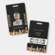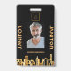 Janitor photo black gold logo city skyline ID badge