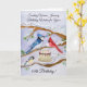 This hand-painted watercolor features a trio of favourite backyard birds a Blue Jay, Cardinal, and Black-Capped Chickadee gathered around a vanilla and chocolate birthday cake topped with glowing candles. It’s the perfect 85th birthday card for someone who loves nature, birds, and beautifully illustrated art.