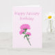 Carnations are the January birthday flower. Here is my drawing of three pink carnations on a birthday card for someone who celebrates a January birthday. You can edit the inside text if desired. Other cards with this design are available.