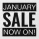 This high quality window sticker is designed to promote your business during the January sale or any other month of the year. The design is created on a black background with transparent text, making it eye-catching and eye-catching.