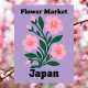 Celebrate the peaceful elegance of East Asia with this striking Japan Flower Market design. This modern illustration features a delicate spray of five-petaled pink blossoms and budding flowers, rising among graceful, dark emerald leaves.