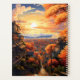 This planner features a vibrant illustration of a stone walkway in a Japanese city in autumn. Bright orange and umber trees line the walkway, which winds down a steep hill. In the distance is the sun hanging in the sky over a blue-grey mountain range. The design is the same on the front and back covers. Personalise the front with the current year.