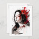Japan edition postcard, part of the world of women postcard collection featuring different women from all over the world in a semi abstract portrait style with splashes of colour from the represented countries flag