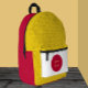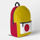 Modern Japanese backpack featuring yellow emblem styling together with colours of Japanese Flag & Japan fashion - love my country, school / university backpack, sports team bag. Stylish travel, holiday backpack for patriots.