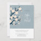 Elevate your wedding with this contemporary-vintage invitation, featuring a stylised cherry blossom tree on a textured light blue background. The reverse side showcases a Japanese-inspired pattern in matching light blue, adding a touch of elegance to your Japandi-themed celebration.