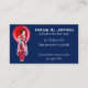 A Japanese style business cards suitable for a Japanese homewares or art shop. From an original painting by artist Sacha Grossel of a Japanese Geisha dressed in traditional costume carrying an umbrella and dressed in a red and pink kimono. This cute Asian art style illustration is colourful and the background colour and text can be changed to suit your taste.