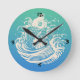 Japanese Art Koi Fish Blue Vintage Design Round Clock